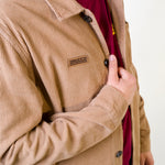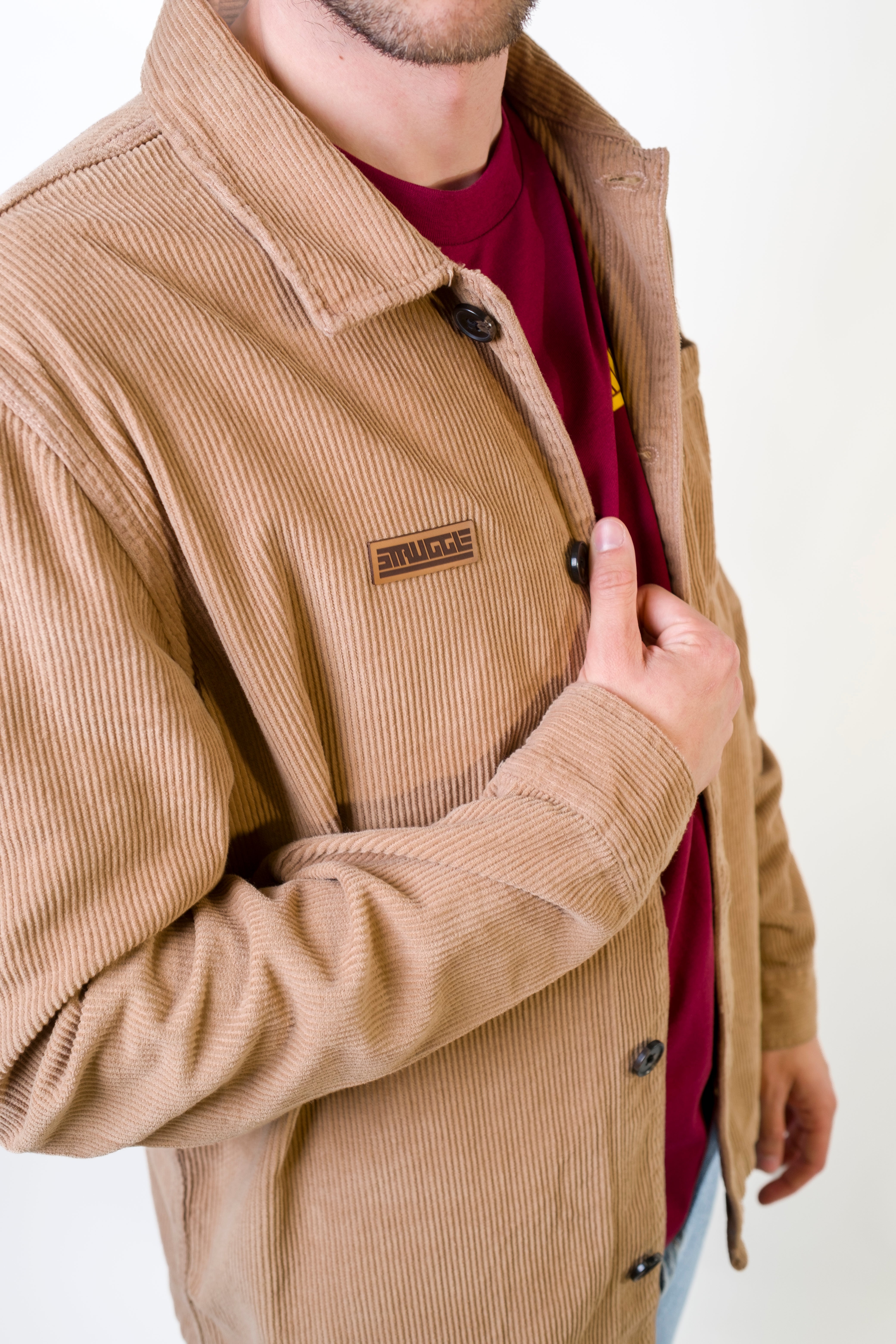Giacchetta da uomo in velluto a coste, morbida e confortevole. Personalizzata con una patch in finta pelle con il logo, per un tocco distintivo e di carattere.