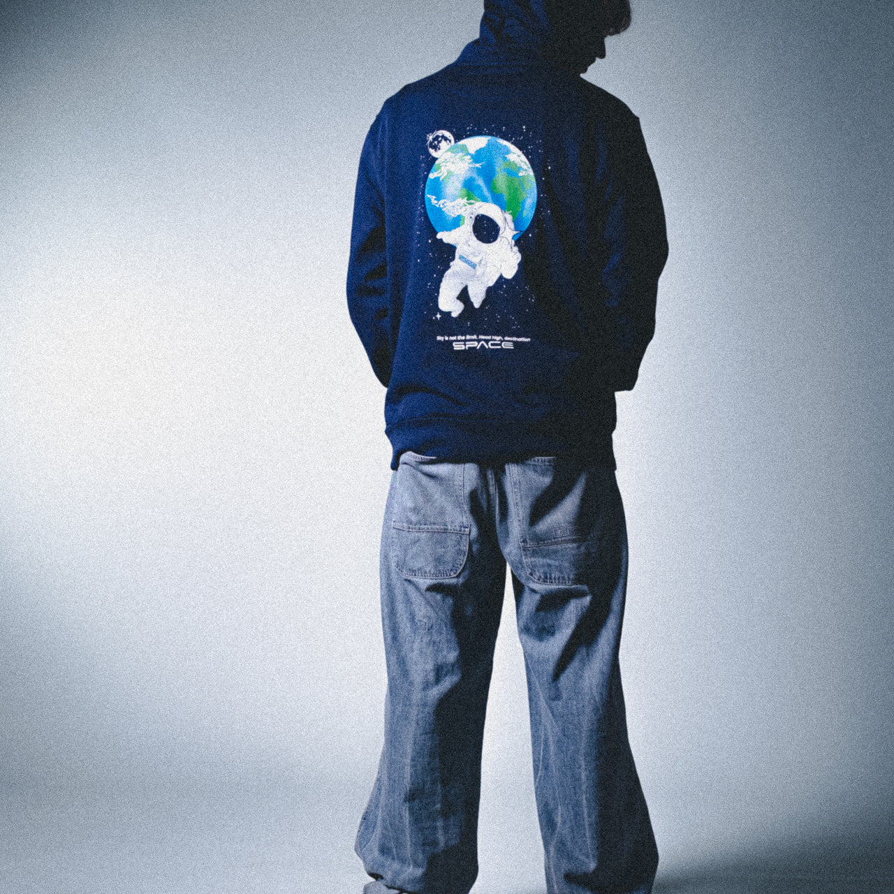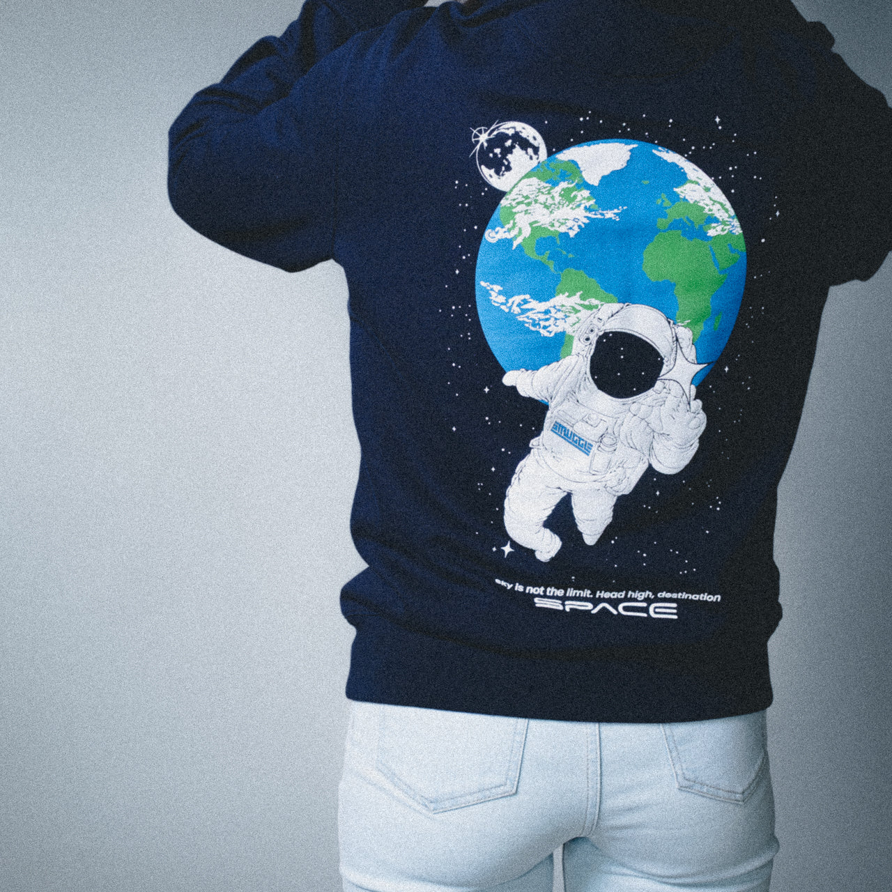 Questa felpa racconta la battaglia verso l’impossibile: la corsa allo spazio come metafora del desiderio umano di superare i propri limiti.
